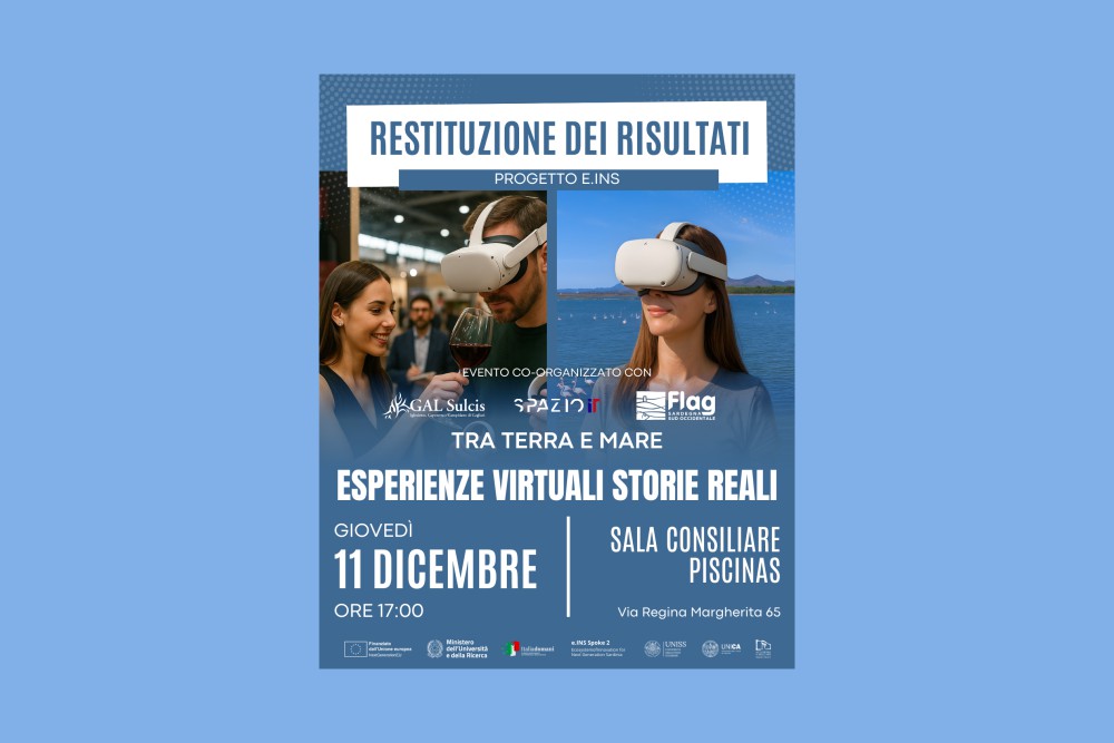 Si svolgerà a Piscinas “Tra terra e mare: esperienze virtuali, storie reali”, l’evento di restituzione dei risultati dei due progetti locali dello Spoke2 del programma e.INS, finanziato dal PNRR per rafforzare la competitività delle imprese sarde della filiera del turismo e dei beni culturali, supportandone la transizione digitale sostenibile.